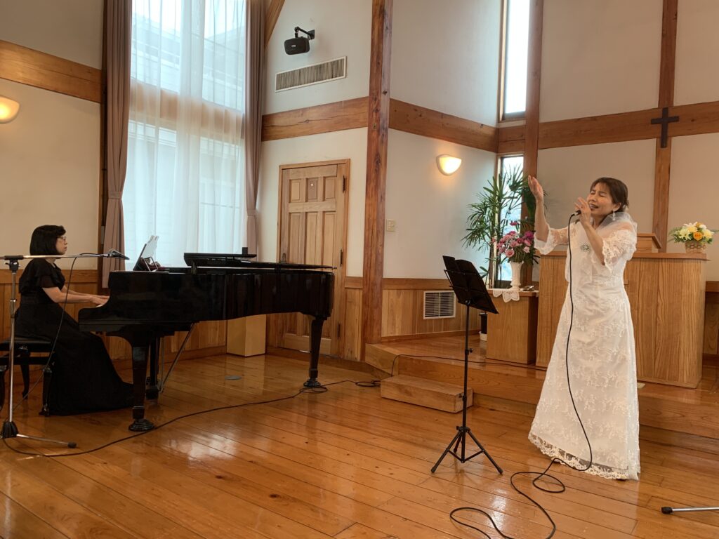 本日、お母さんび Graceというユニットで活躍されている、八木容子さん、濱田淳子さんをお迎えして、チャペルコンサートを行うことができました。教会外の方をお迎えしてのチャペルコンサートは7年ぶりでした。寒い日でしたが教会の中は賛美が響き、ハレルヤでした。